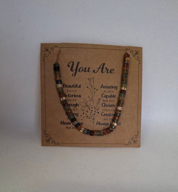 Prachtige armband met mooie kleuren en een kaartje met bemoedigende teksten. Mooi cadeau om te geven om medeleven te tonen aan iemand die het moeilijk heeft.