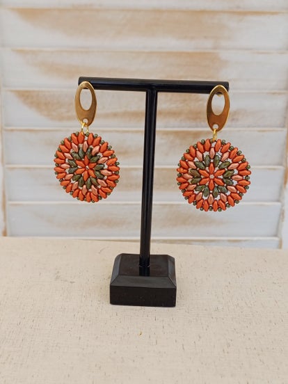 Oorbellen rond oranje / groen
