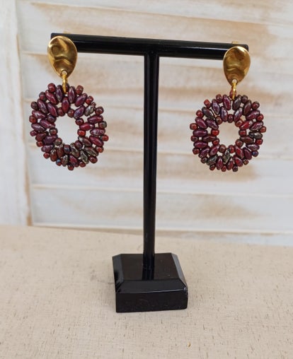 Oorbellen donkerrood rond