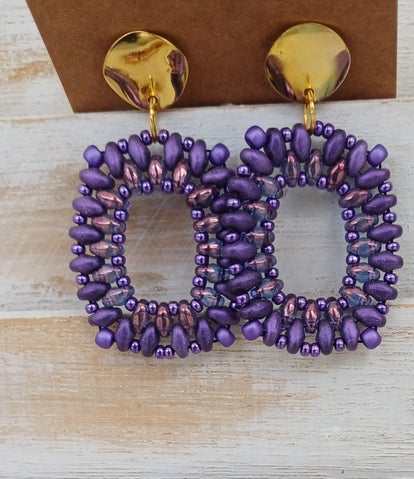 Oorbellen rechthoekig paars