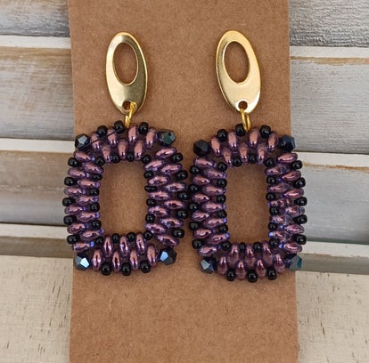 Oorbellen rechthoekig paars met zwart