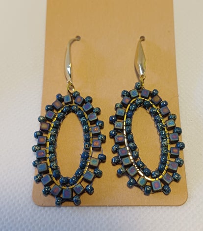 Oorbellen ovaal donkerblauw