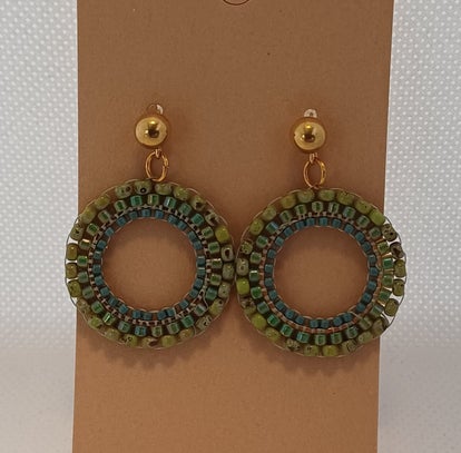 Oorbellen rond groot beige / groen