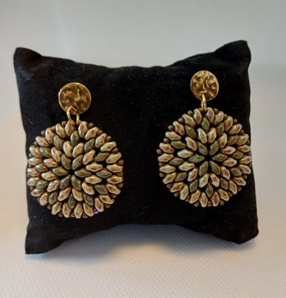 Oorbellen rond beige / olijfgroen