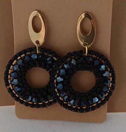 Oorbellen rond groot donkerblauw